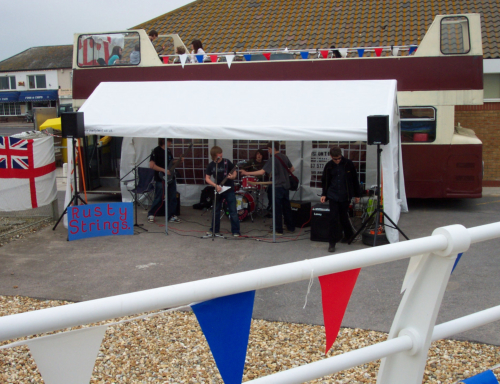 In late 2007 an idea was born to hold live music events on the Eastoke Corner green, it became apparent that this was not going to be possible but after discussion with Havant Borough Council it was moved to the newly created Plaza area where a natural amphitheatre had been created.After many meetings and much discussion “Playing on the Plaza” was born. Six months later and on a Sunday afternoon in early May 2008 the very first Plaza event went ahead, with three local bands featured from Hayling Island...........4 FingersMinds Gone BlankRusty StringsAt that time little did the Plaza team know that this one event would spawn into regular monthly free entertainment on the Plaza over the coming years with Havant Borough Council putting in place an official covered area with power and licensing the area for entertainment through out the year.This now means anyone can hold their own event on the Plaza by making just a few enquiries. If you would like to hold an event on the Plaza you can either contact us or Havant Council.Below are a few photos of the very first event, to see other years events click the year pictures above.